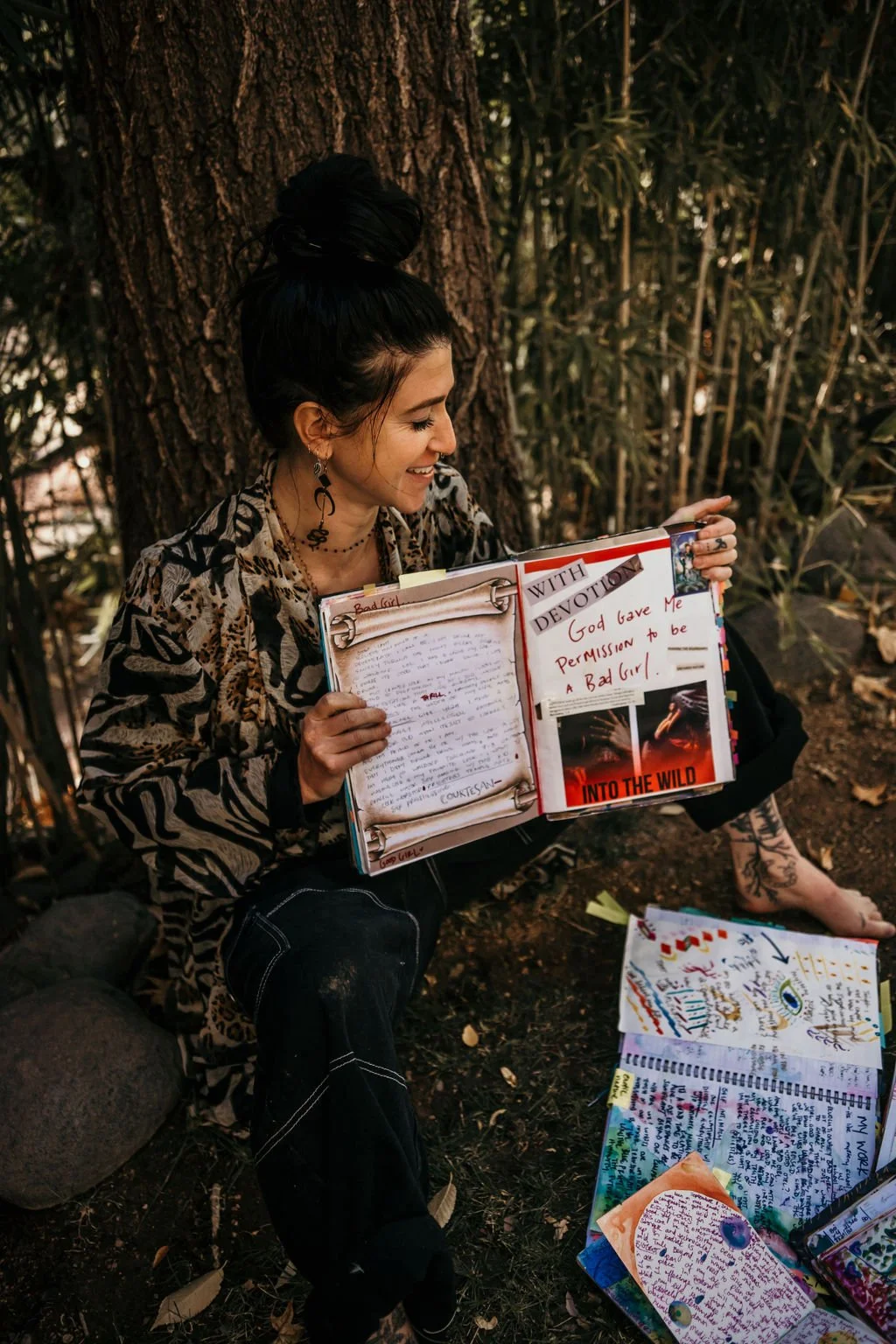 It feels different to document your becoming when your journal means something to you. Through words, collage, paint and more, your inner transformation can become a treasurebook before your eyes. These journals support you turning multi-media journaling into a LIFESTYLE. This practice supports us in becoming reverent witnesses to ourselves and our incredible lives.